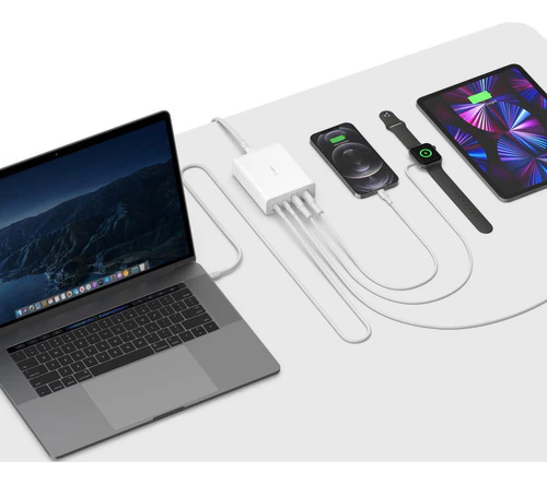 108 w de potencia combinada para cargar hasta 4 dispositivos compatibles a través de sus 2 puertos usb-c y 2 puertos usb-a.